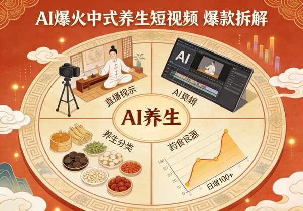本项目敏锐捕捉到当下 “中式养生” 与 “AI技术” 的完美结合点,旨在帮助创作者避开过度内卷的赛道,转而深耕需求巨大且利润丰厚的“健康养生”领域。这并非传统的中医教学,而是一套利用AI工具,将传统养生知识转化为现代人爱看的爆款视频的系统性玩法。无论你是想做副业赚取额外收入,还是寻求内容创业的新方向,这套指南都能提供从选题策划到视频制作、再到变现落地的完整解决方案。