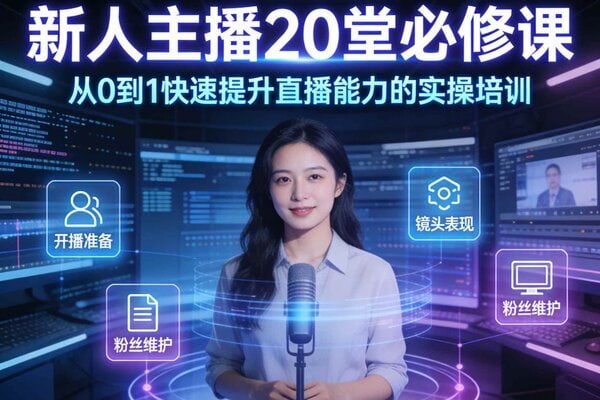 “新人主播20堂必修课” 是一套专为直播行业新人打造的全方位实战指南。这不仅仅是一套理论课程,而是一份涵盖了从账号搭建、话术设计到流量获取的完整实操手册。